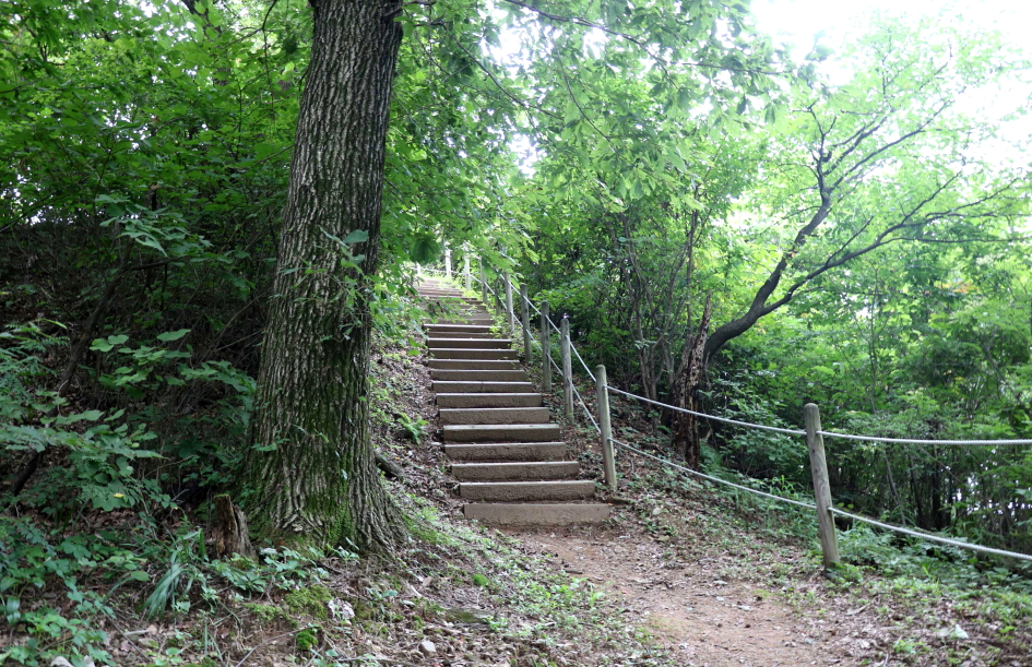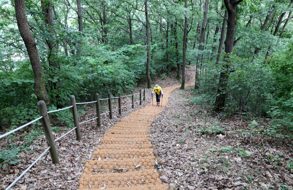 경사가 있는 능선을 따라 난간대가 있고 새로이 야자매트가 깔린 계단을 올라탄다.