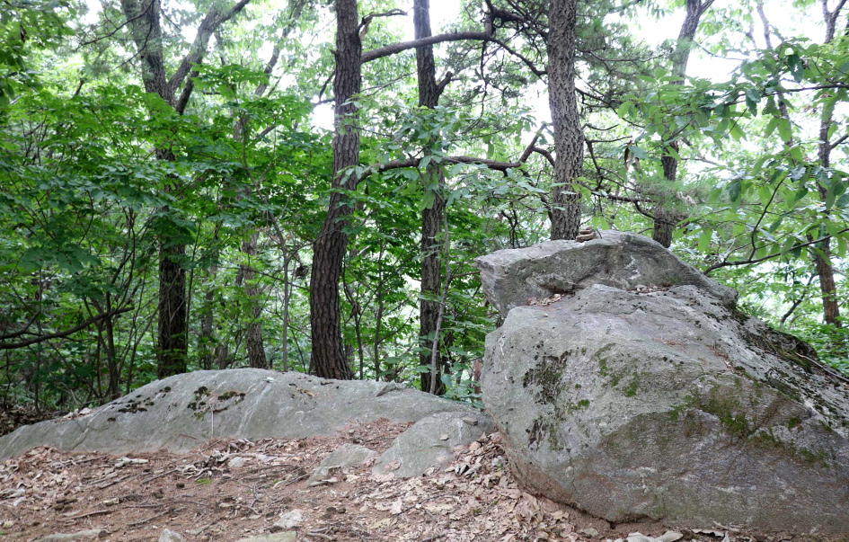 봉무산 산길 주변에는 참나무가 주종을 이루고 소나무는 별로 보이지 않는 풍경이다.