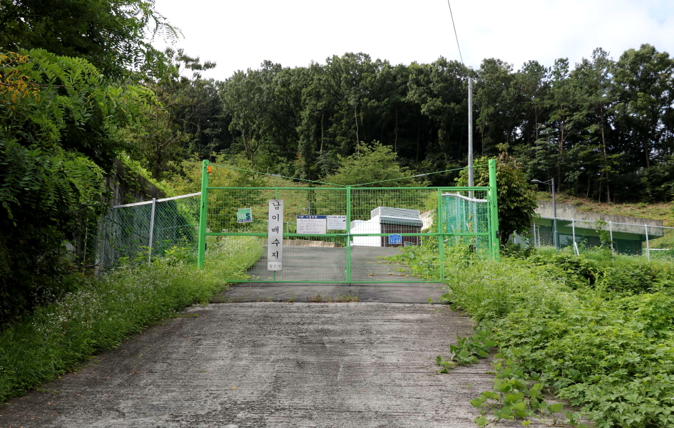 남이배수지가 자리하고 아래쪽에 주차장이 자리하기도 한다.(09:18)