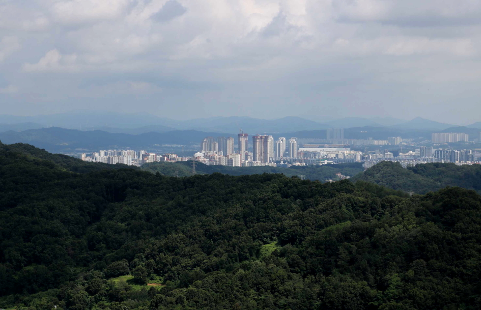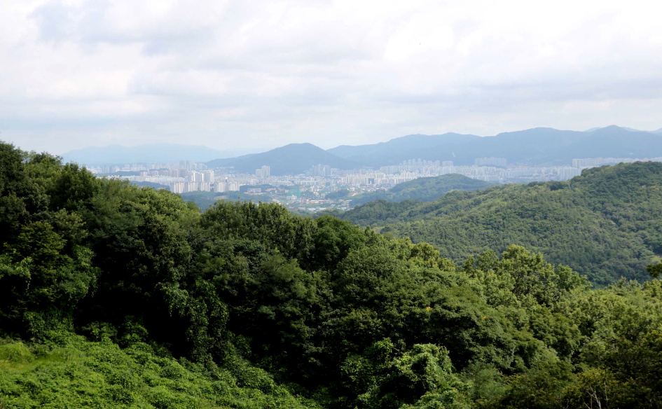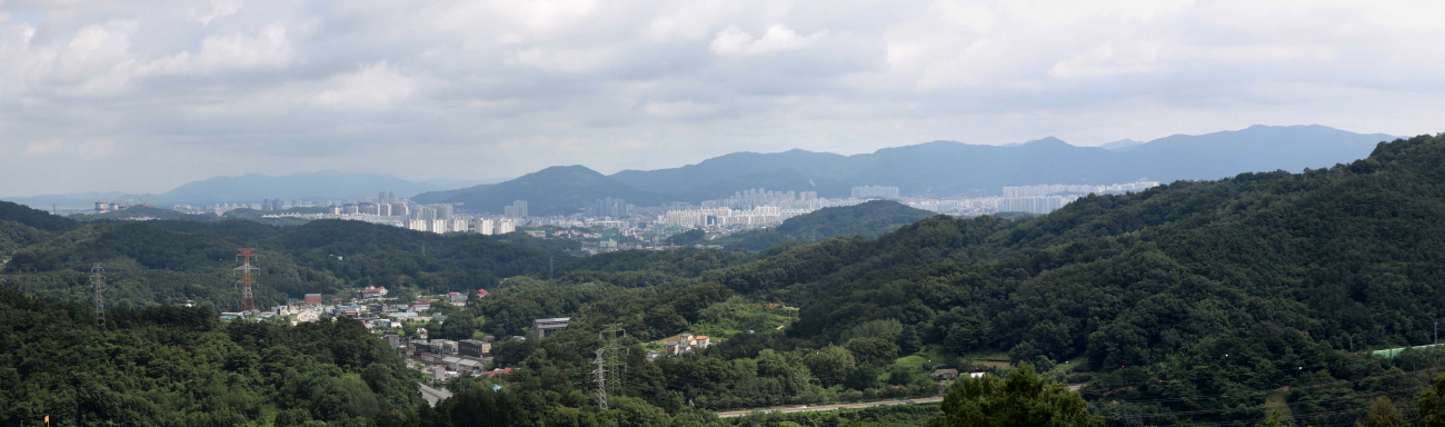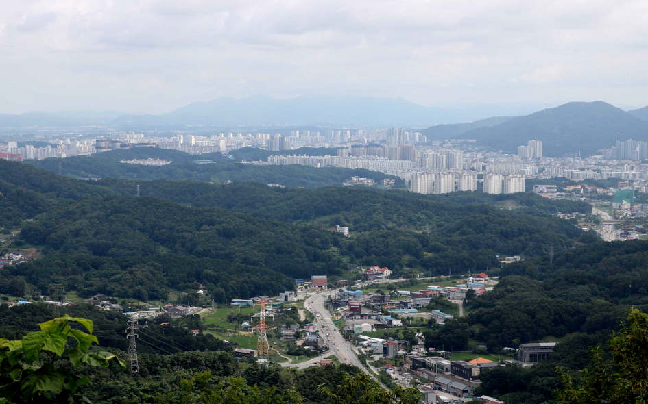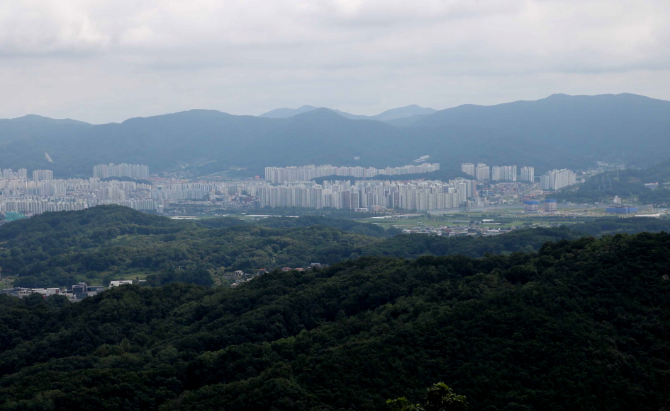 북쪽 방향으로 용덕산, 망월산 사이에는 가려진 부모산과 테크노폴리스의 모습이..