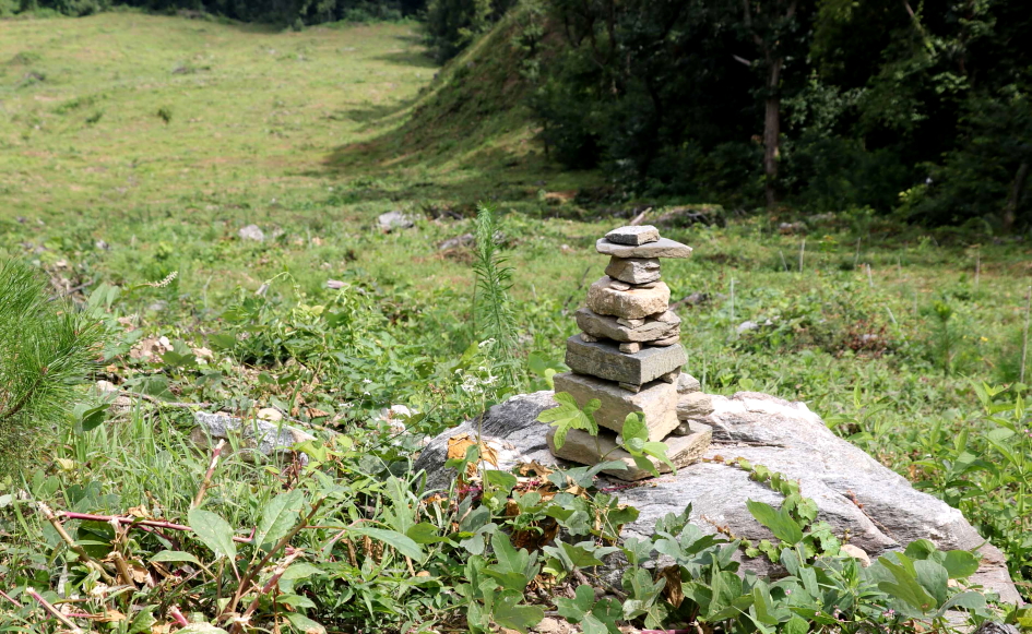 주변에 닭의 벼슬을 닮은 닭의장풀과 산초나무가 꽃을 피운 모습이 눈길을 끌기도..