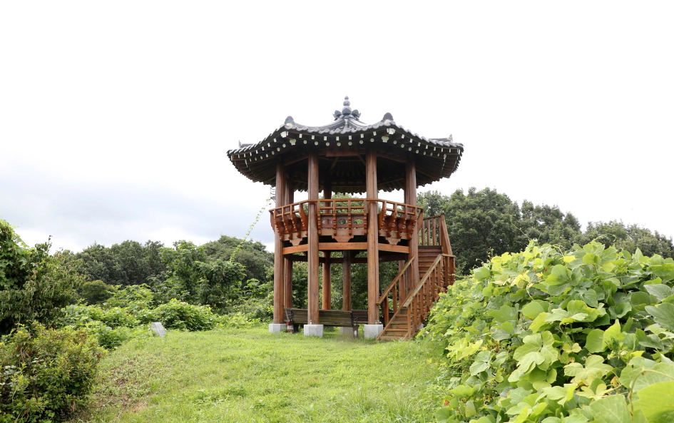난간대 있는 경사의 계단을 따라 올라서자 정상에 팔각정이 자리하고 있다. (09:52)