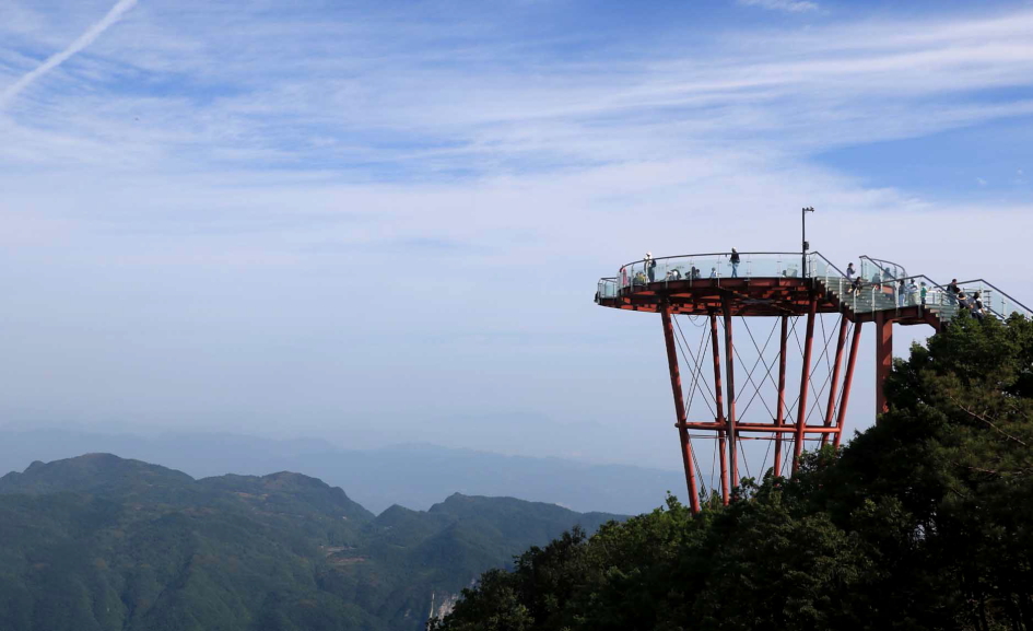 칠성산의 하이라이트인 유리전망대는 해발 1,520m에 위치하며 장가계의 절경이 펼쳐진다.