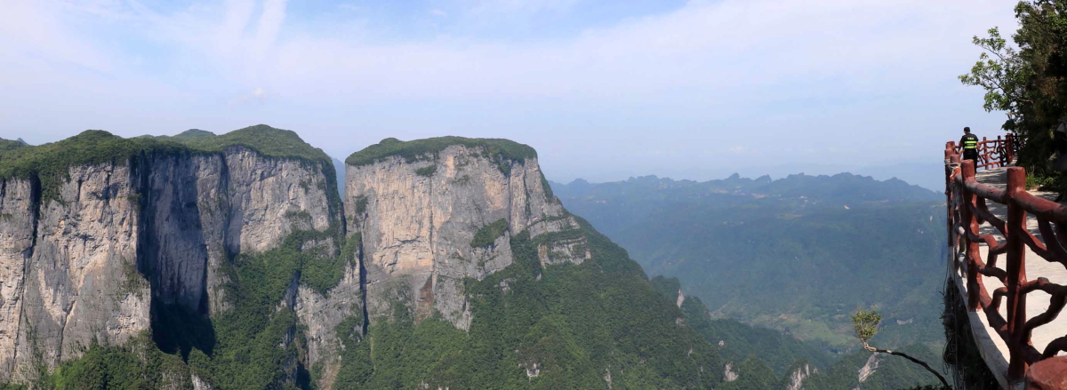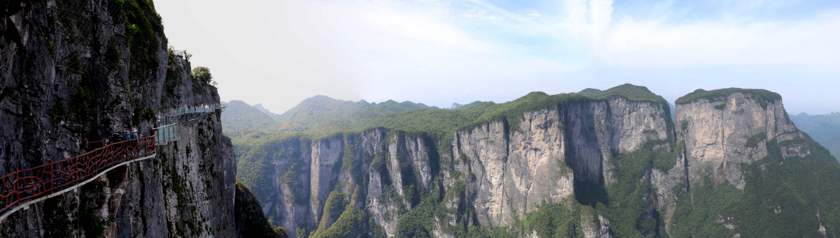 절벽에 자리한 가야 할 유리잔도와 함께 주변의 풍경을 파노라마로 만들어 보기도 한다.