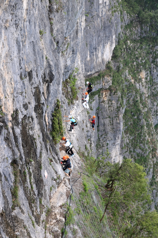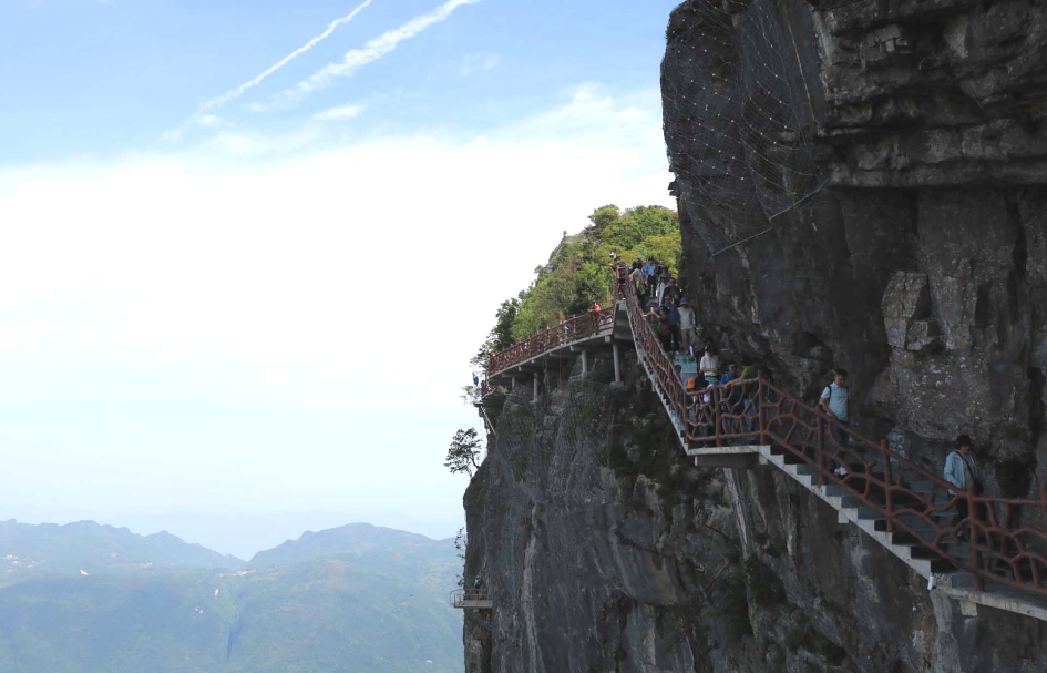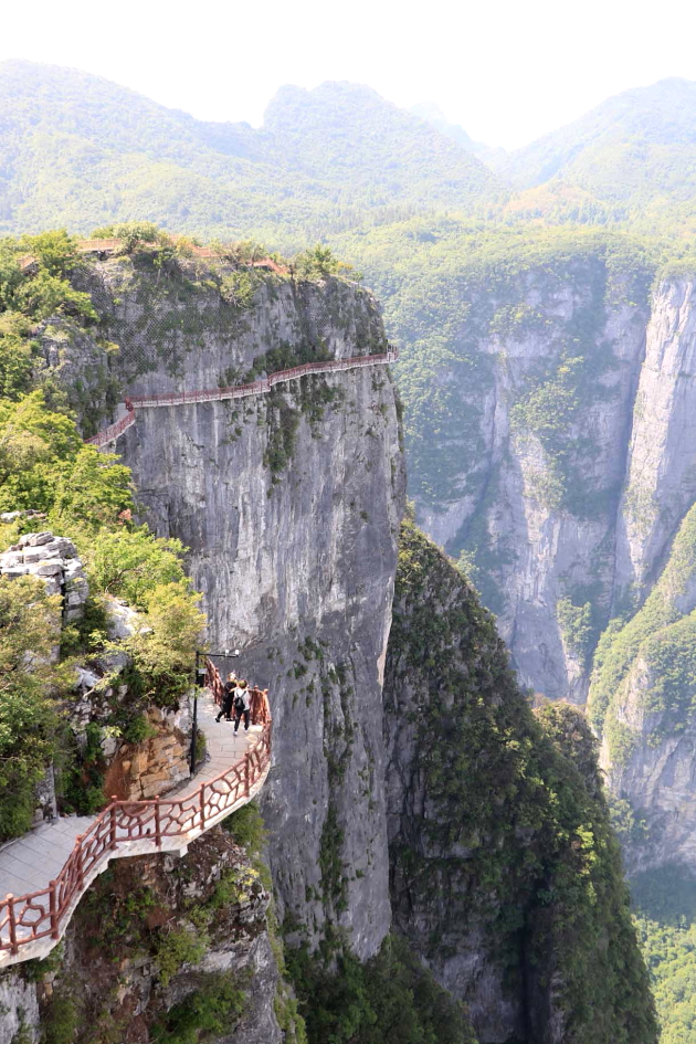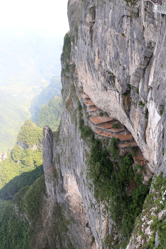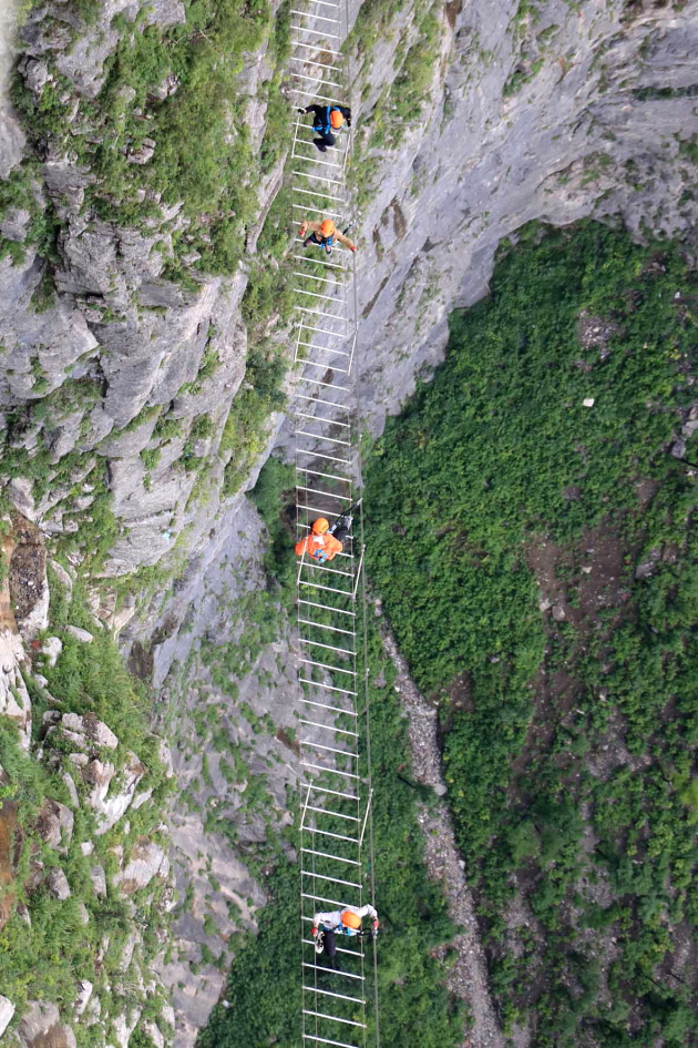 1,500m 절벽에 설치된 하늘사다리는 3시간 동안 전문가와 함께하며 비용은 580위안..