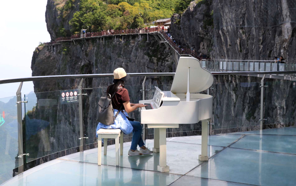 유리잔도에는 피아노, 첼로가 설치된 포토죤이 있어 유리잔도의 인증샷을 찍기도 한다.
