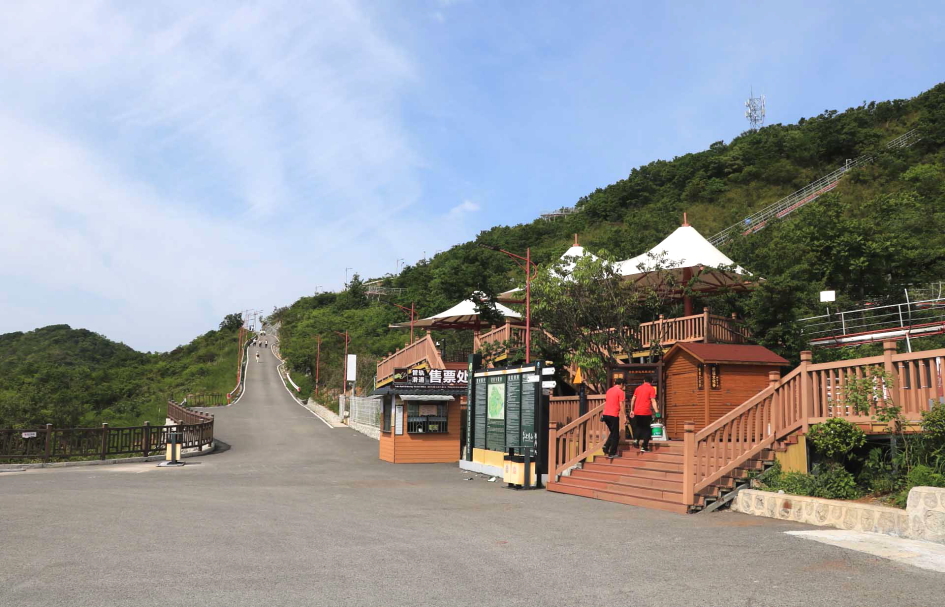 정상으로 가기 위해 양쪽으로 걷는 길이 있지만 일인용 모노레일을 매표하는 모습이다.